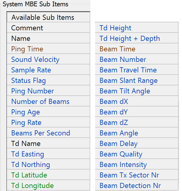 Because different types of multibeam echosounder systems are supported (Ro/Theta, X/Y/Z, Profilers) and multi-transducer systems, some items below may not be applicable for the concerned type.