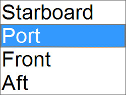 | Orientation - heading reference | Origin - view perspective (Stb., Port, Front, Aft) | |||