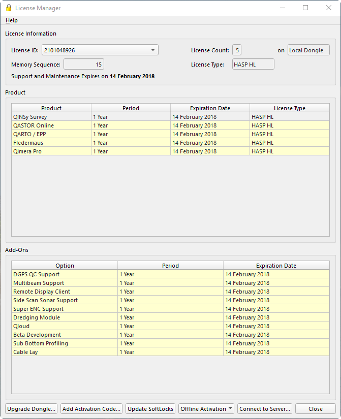 The programs Qinsy, Qimera, Qarto and Qastor all make use of the HASP licensing USB dongles.