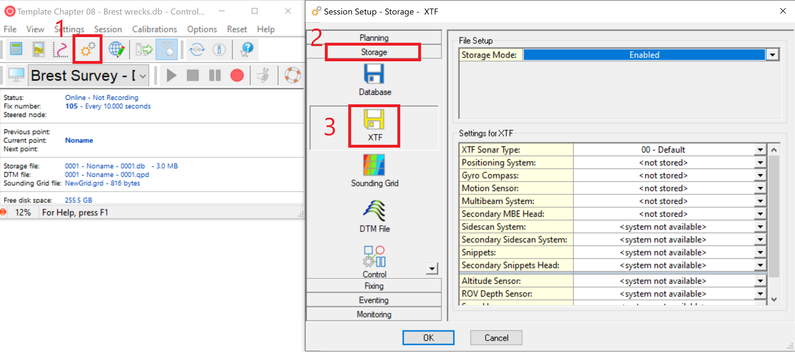 To create XTF’s in real time, navigate to the Storage section in Session Setup while online: